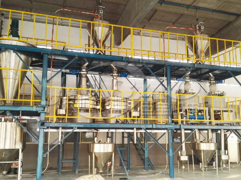 工藝流程:自動投料、人工投料——稱重定量設(shè)備——輸送——混料機/混料機/混煉機等等