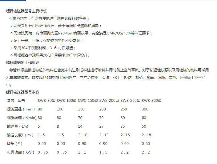 2、從進料口進料經螺旋器強制性使物料輸送到出料口。
