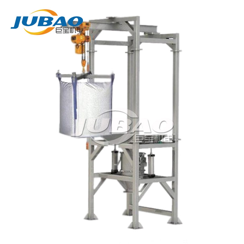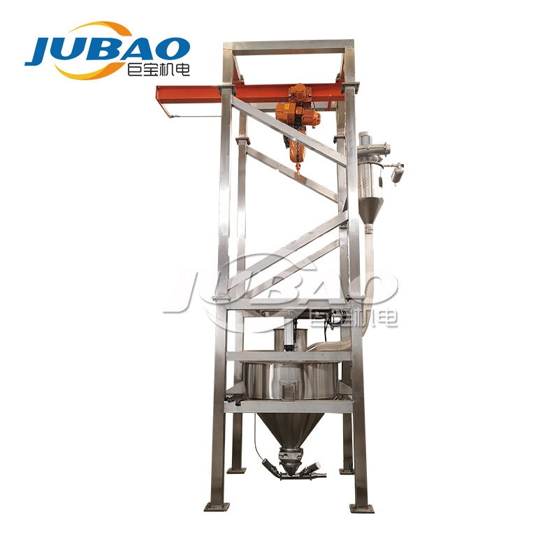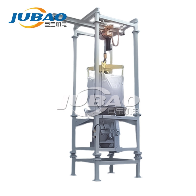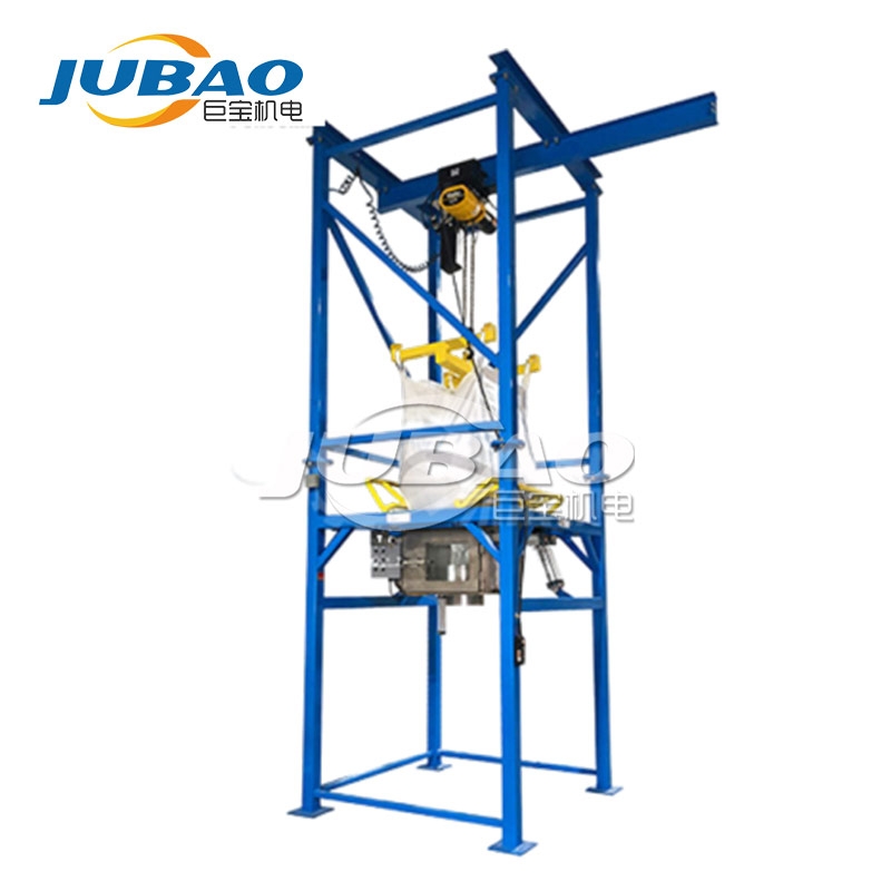 噸袋卸料投料站用于噸袋裝粉狀、顆粒狀物料拆包卸料作業。該設備由機架、提升裝置、隔膜閥、暫存料倉等組成;根據工藝特點和設備尺寸,可以采用吊機和叉車兩種不同的方式; 可配有雙軌道,用于兩只電動葫蘆安裝的場合中,提高拆袋效率;材質分為碳鋼和不銹鋼兩種;整套設備密封性好,操作簡便,提高了生產環境和生產效率。