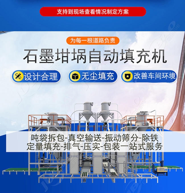 用于大規格坩堝石墨粉定量擠壓和裝填,特別適用于石墨化企業坩堝充填。