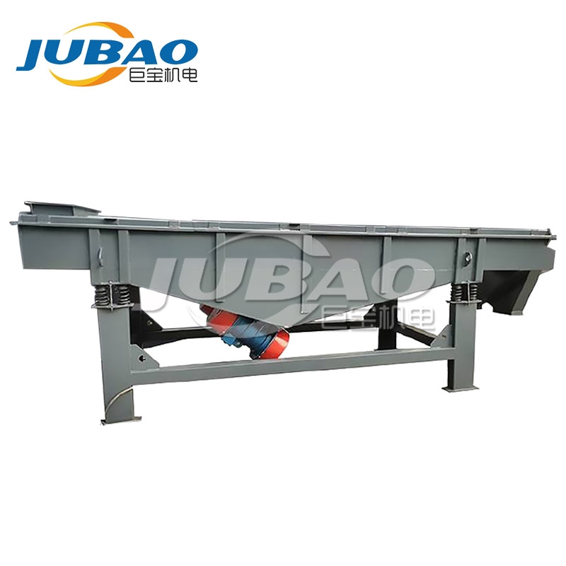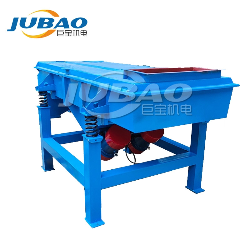直線振動篩由篩箱、振動電機、減振系統及底架等組成。篩箱由槽體、上蓋、進料口、篩框、篩板(網)、襯網、出料口等組成。減振系統由阻尼彈簧和彈簧座等組成。