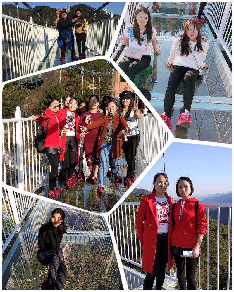 除了團隊風采展示,整個拓展還準備了一些高空個人挑戰項目,比如10D玻璃橋、懸崖秋千、步步驚心、滑道等。
