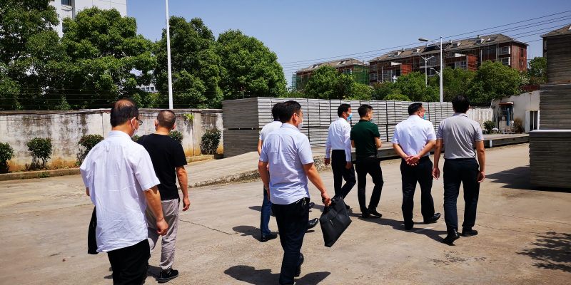 5月18日,鄂州市副市長姜飛輪、市商務局局長余國安 、市市場監督局喻志兵副局長,在華容區委副書記夏鑫、副區長葉圣海 、市場監督局局長張本順陪同下,到湖北博悅佳實業有限公司檢查疫情防護物資口罩生產及質量情況。