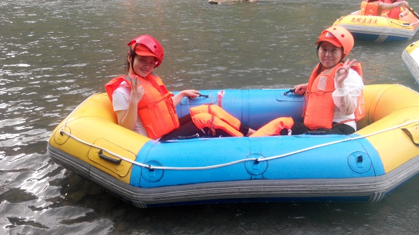 下午我們來到了位于宜昌秭歸縣的九畹溪,開始了長達3個小時的漂流之旅,既驚險又刺激,大家都玩的很high.