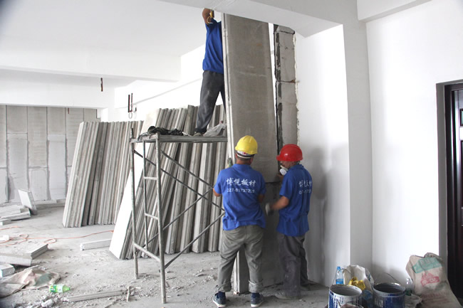 博悅佳工人正在安裝輕質(zhì)隔墻板
